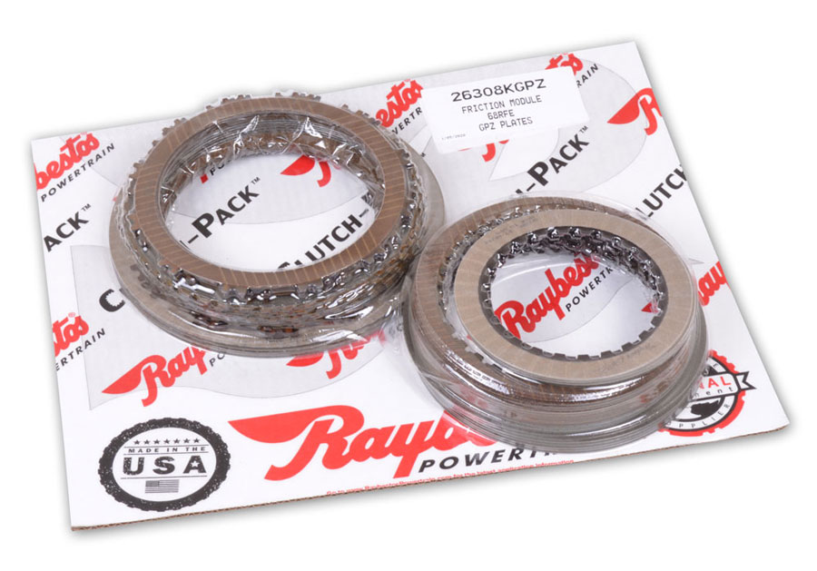 Raybestos® Powertrain Chrysler 68RFE With GPZ Clutch Pack® Module. RGPZ-6800 features V3 2C GPZ, 6 Overdrive GPZ, 7 Low/Reverse High Energy, 5 Underdrive GPZ, 7 Low/Reverse High Energy, 2 Reverse High Energy, 5 Underdrive GPZ, 6 Overdrive GPZ, 3 4C GPZ Friction Clutch Plates.