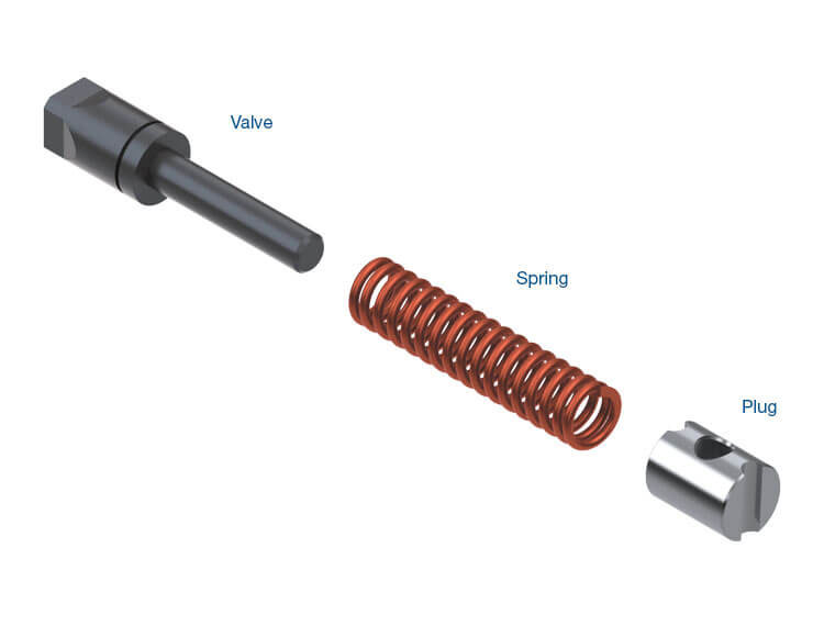 One valve and spring combination works for either Forward or Reverse abuse locations