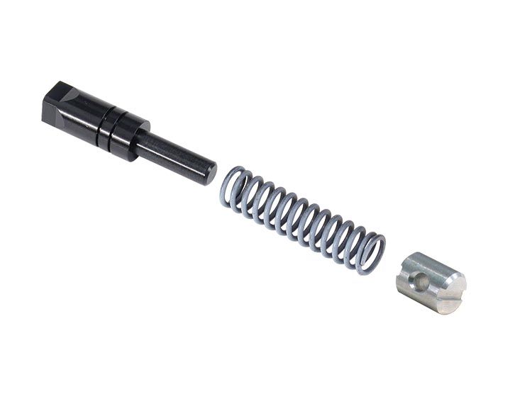 In GM 4L60-E, 4L65-E and 4L70-E units, continuous oscillation of the Forward and Reverse abuse valves creates bore wear, allowing clutch feed pressure to exhaust. This reduced clutch pressure causes slippage and burn-up. The Sonnax drop-in replacement valve is slightly oversized and has extended spool lengths to provide additional sealing contact area. The stabilization flats on the inboard end of the spool maintain OE flow, but provide continual valve support while stroking. Annular grooves have been added to prevent side loading and a new spring is provided for the modified valve length. Sonnax Forward and Reverse abuse valve kit 77754-35K fits either the Forward or Reverse abuse location and includes a replacement bore plug.