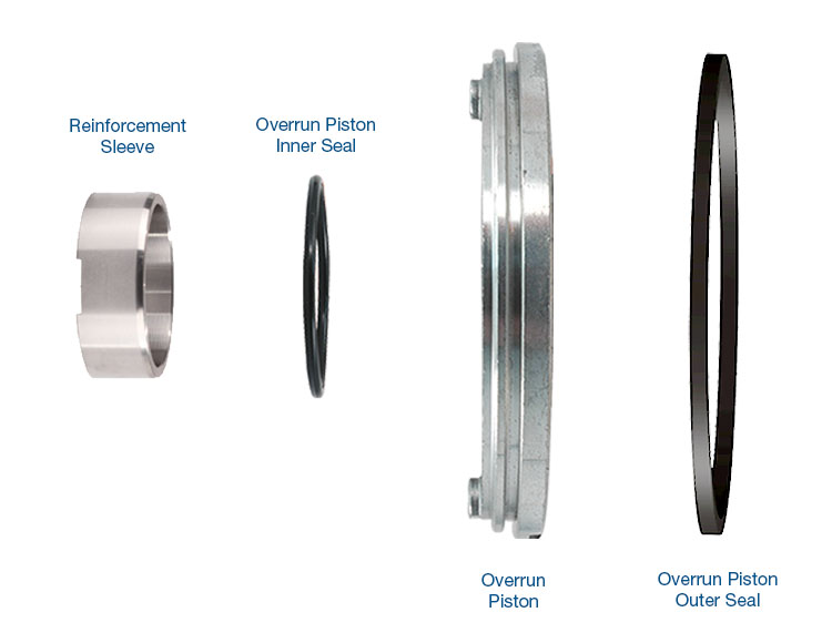 Custom overrun piston works with steel forward piston