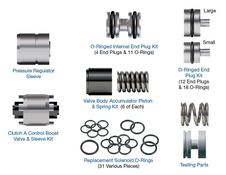 Detailed technical booklet included with in-depth rebuild and inspection tips for comprehensive valve body repair